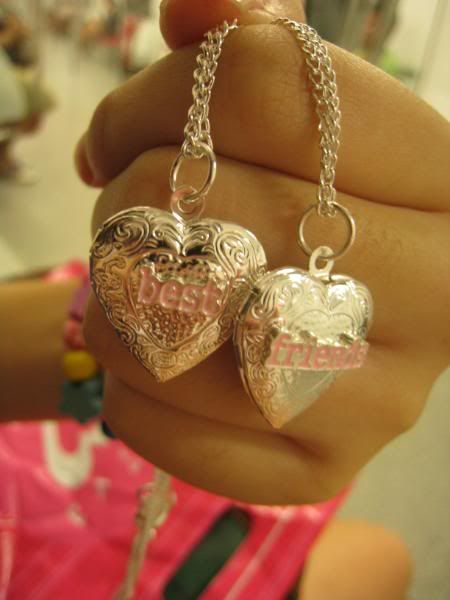 Anyway...... brought not much cash coz i spent it on f21 spree blabla alrdy, hehe. Hmm, we bought another pair of best friends necklace, it's so pretty i luv it! :)